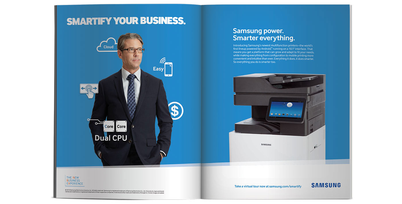 Samsung is a global leader in multifunction printers but a relative underdog in the U.S. B2B market. In a tricky category where they were outspent by entrenched competition, Samsung faced low awareness and brand recognition. They needed a powerful campaign to get the word out about their line of printers featuring the world’s first Android-based operating system. The challenge was that IT decision makers only think about their printers when they break down. And they span seven distinct global markets and radically different verticals ranging from education to healthcare.
